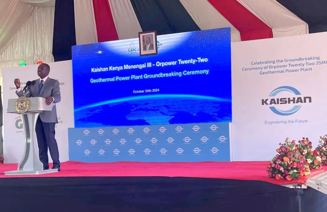 William Ruto總統發表了熱情洋溢的演講,他強調了可持續能源發展在實現肯尼亞2030愿景中的重要性,他說:“投資可再生能源是高效、可靠和可持續的。啟動這個35MW發電廠項目彰顯了我國巨大地熱潛力、推動經濟增長和激勵公私合營(PPP)合作、加速經濟轉型的承諾。開山等投資者展示了政府與私營部門合作在吸引外商直接投資和為年輕人創造就業機會方面的價值。通過他們的投資,我們獲得了能源、就業機會,并推動了工業化,實現了雙贏的結果”。