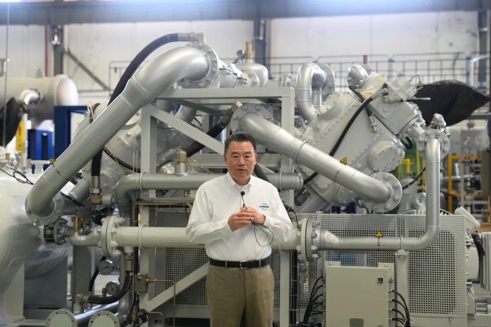 今天,剛剛從國外出差回來的曹董事長也參加了發布會。他要求經銷商伙伴跟隨開山發展戰略,持續轉型升級不停步,與開山一道共同努力,從單一的空氣壓縮機公司轉型升級成為全球領先的壓縮機綜合公司。